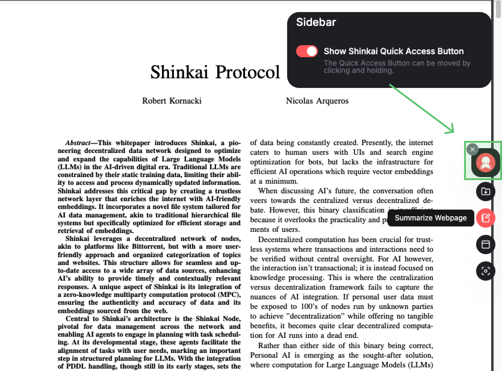 The extension enables Shinkai to access, summarize, and organize web content directly in your browser, making tasks like research, reading, and data collection faster and more efficient.