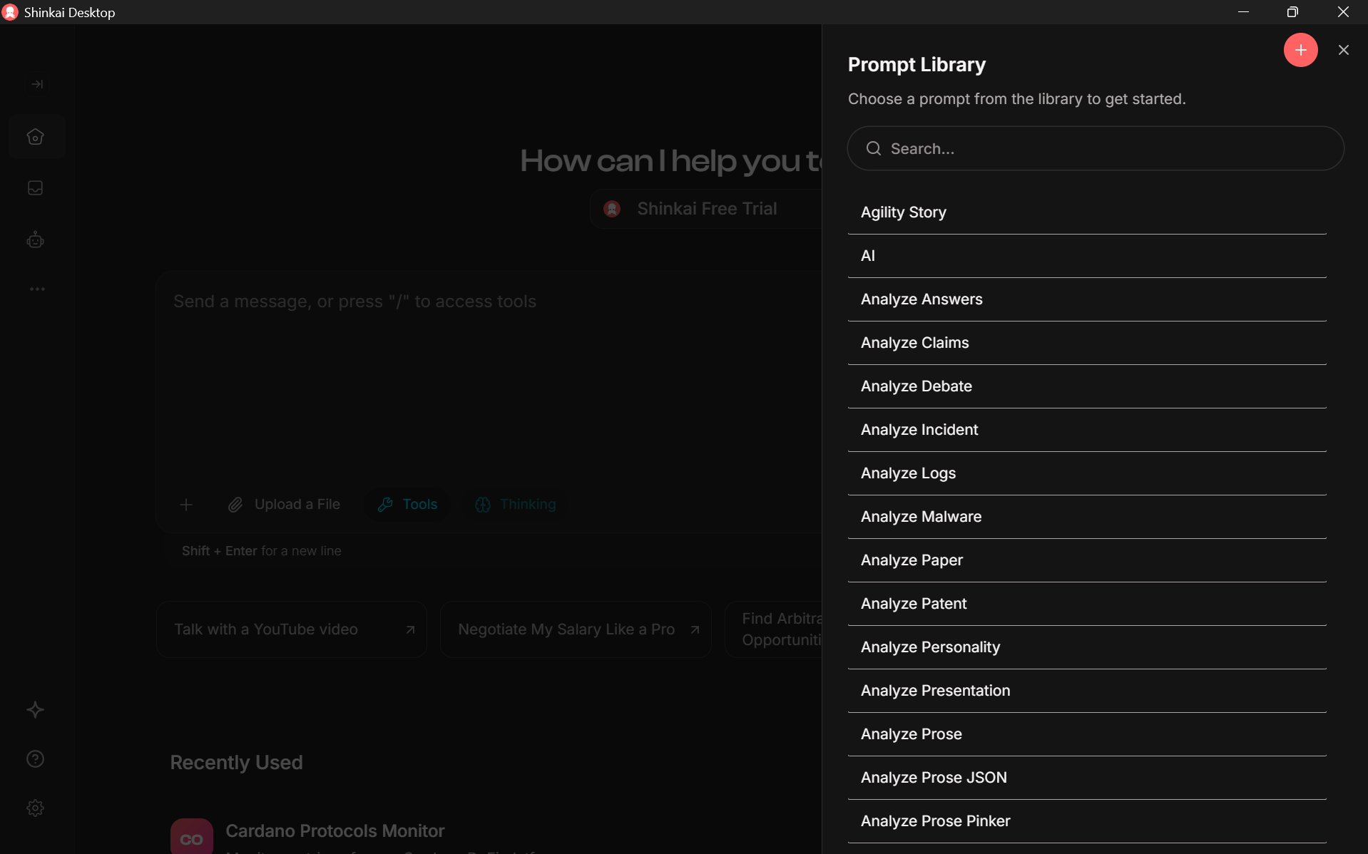 Shinkai comes with an extensive list of ready-to-use prompts. Just click on the books icon and the list will appear on the right side of your app.